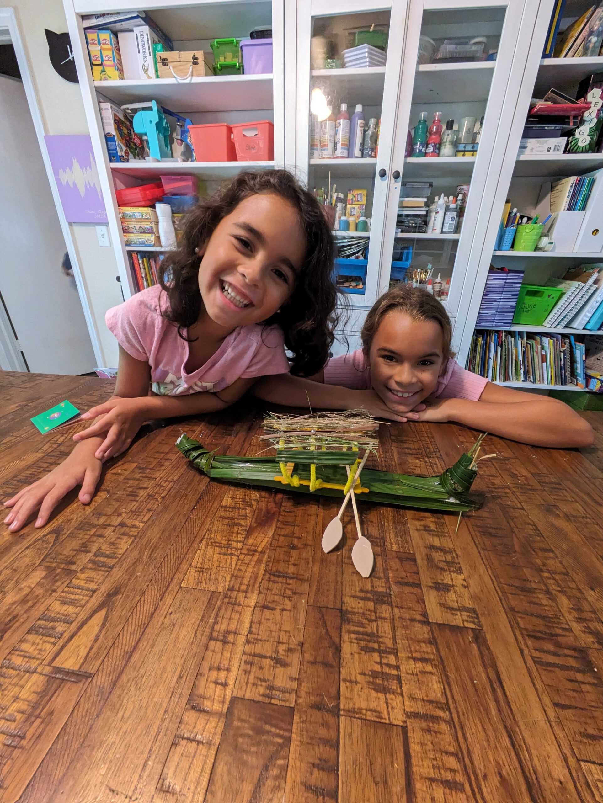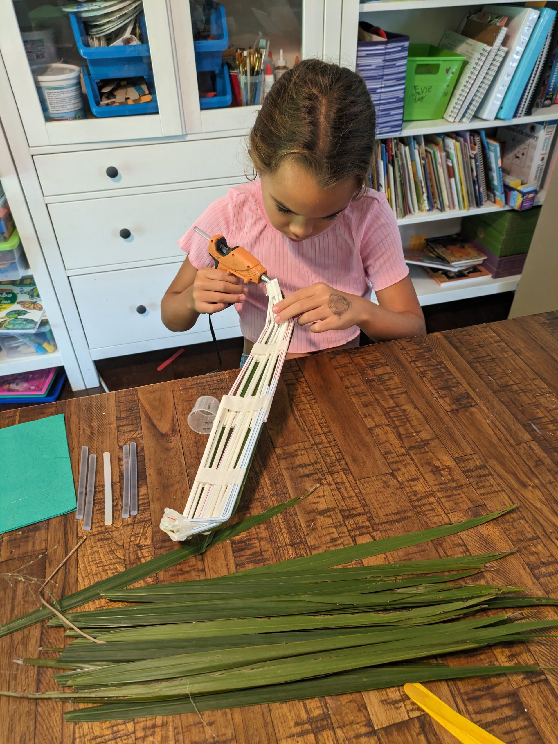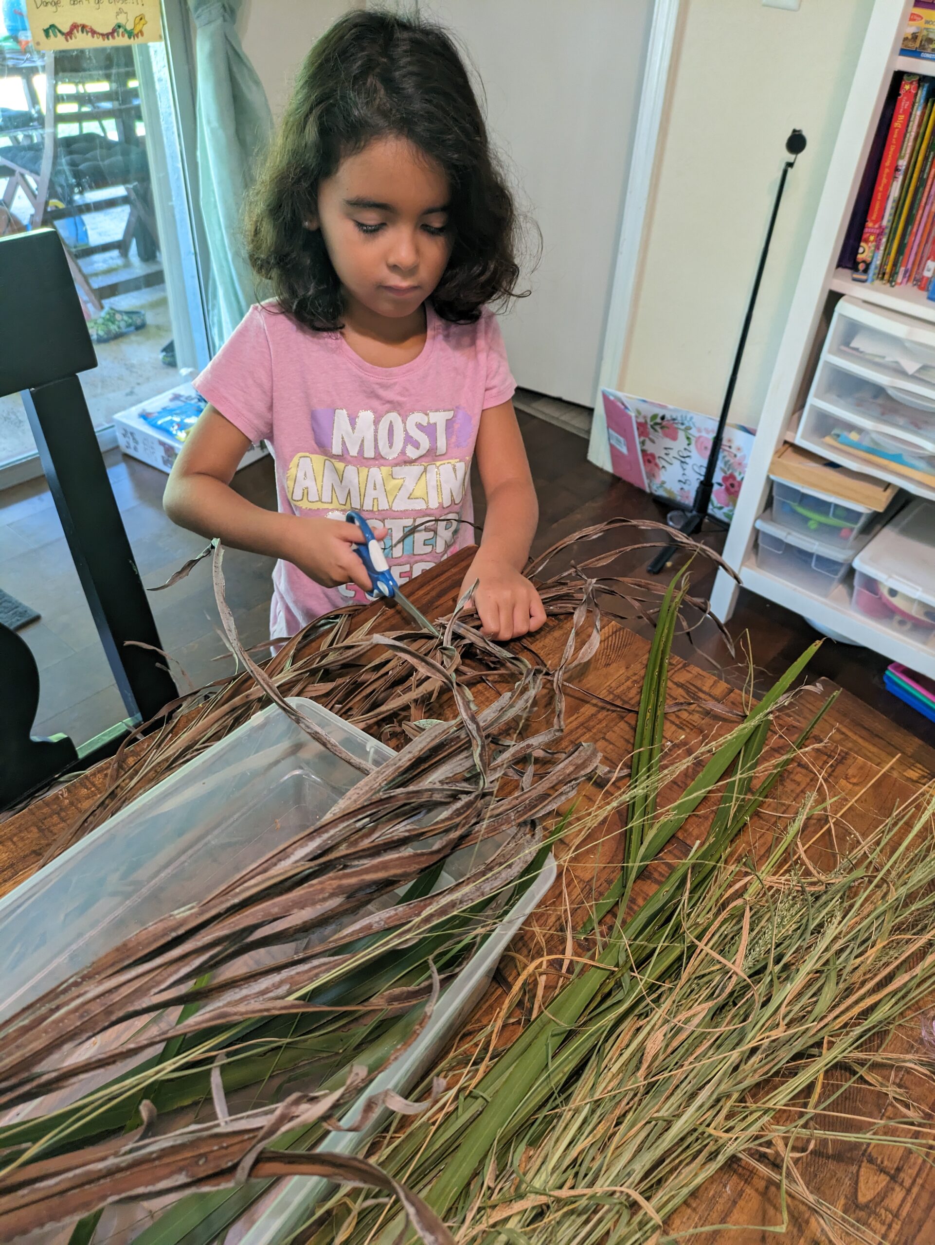 We also learned about their reed boats to travel the Nile. One morning Isla went on a backyard hunt to collect grass and palm fronds to cut and dry out. It kept her nice and busy. then the next day we built our boat. Bendy straws work really well to build the frame that can the little curled fronts and backs. Then they covered it with their grass and fronds and added a little canopy. We did not test if floating, but it’s cutest was definetly there.