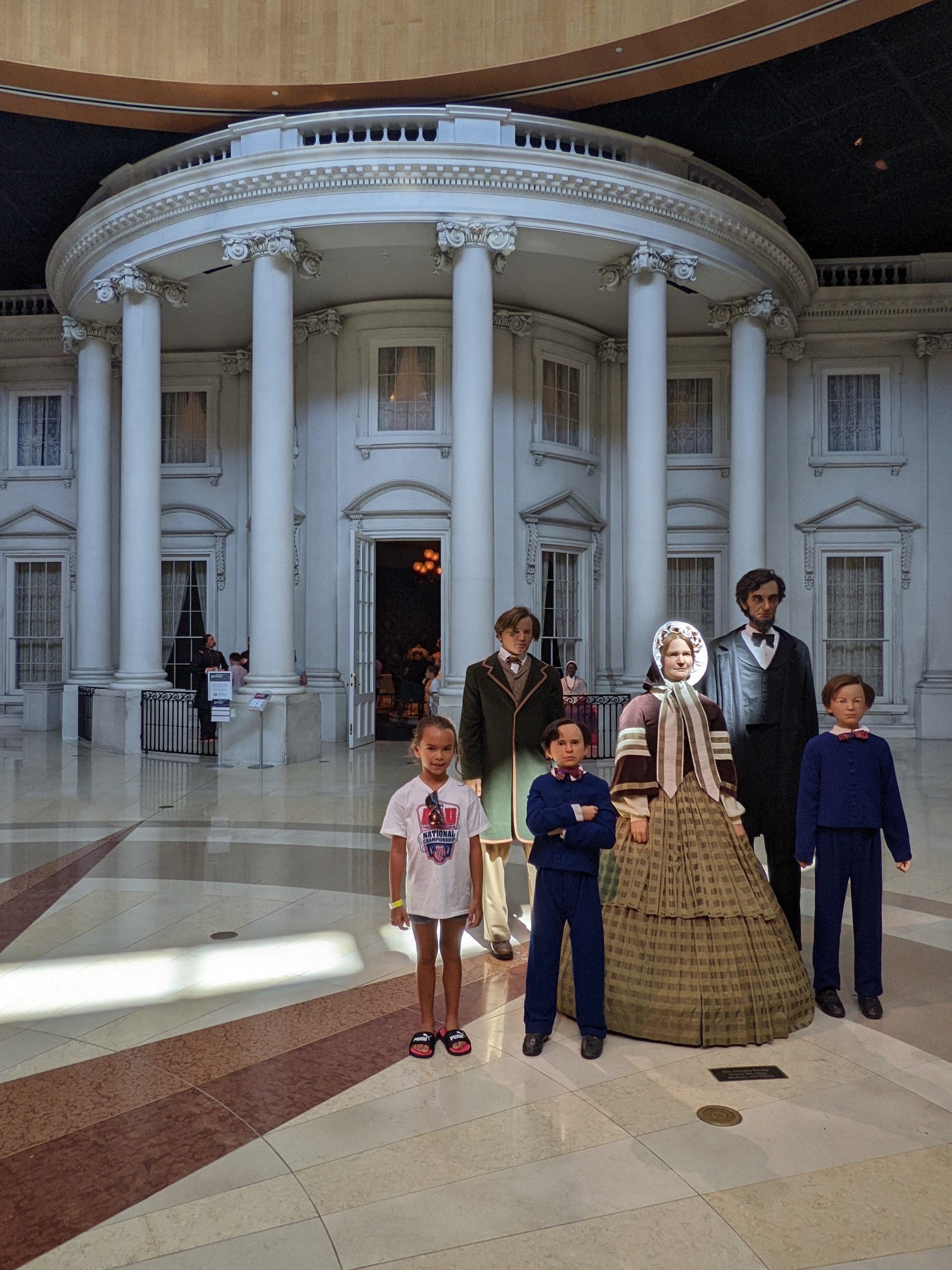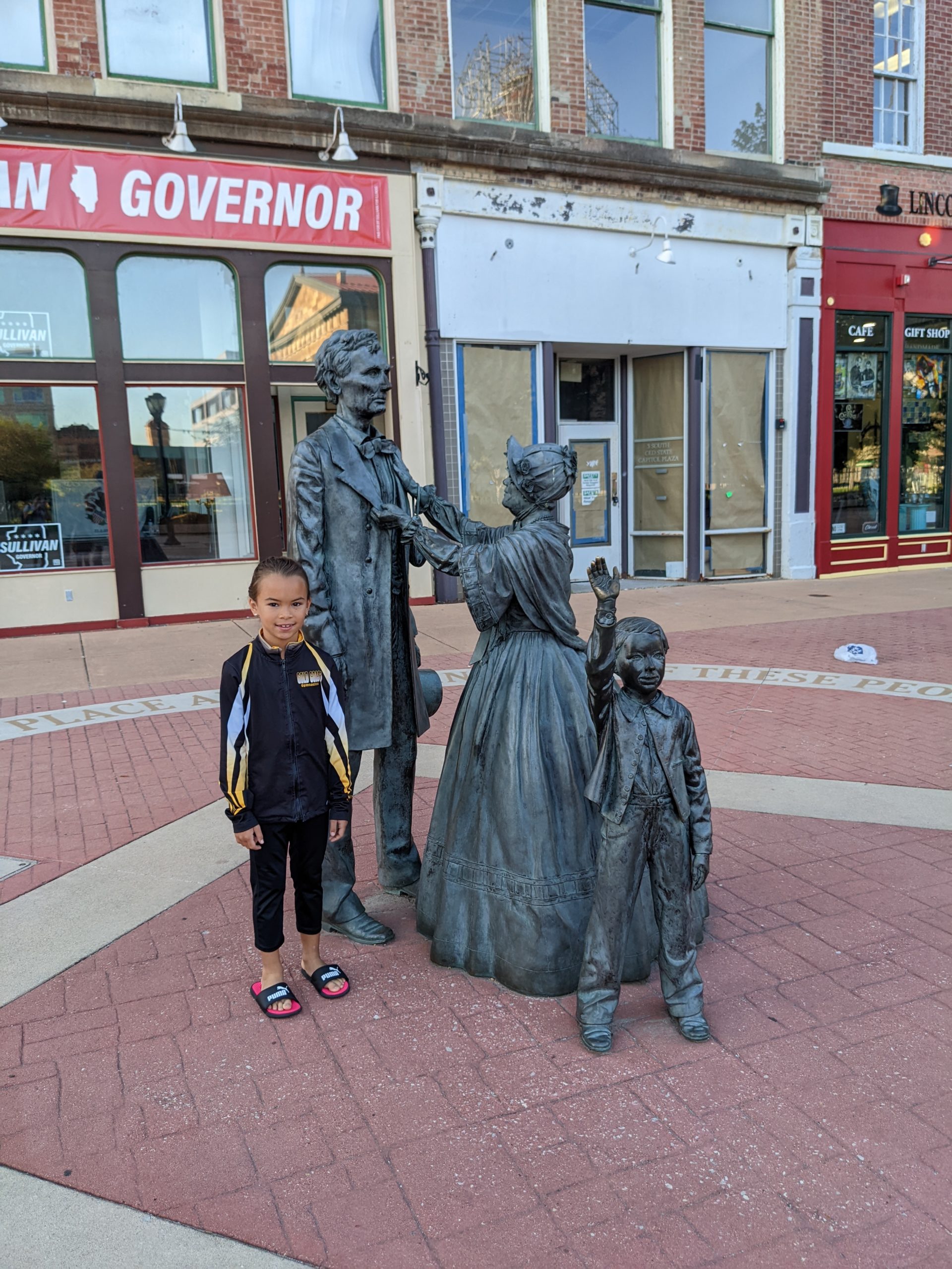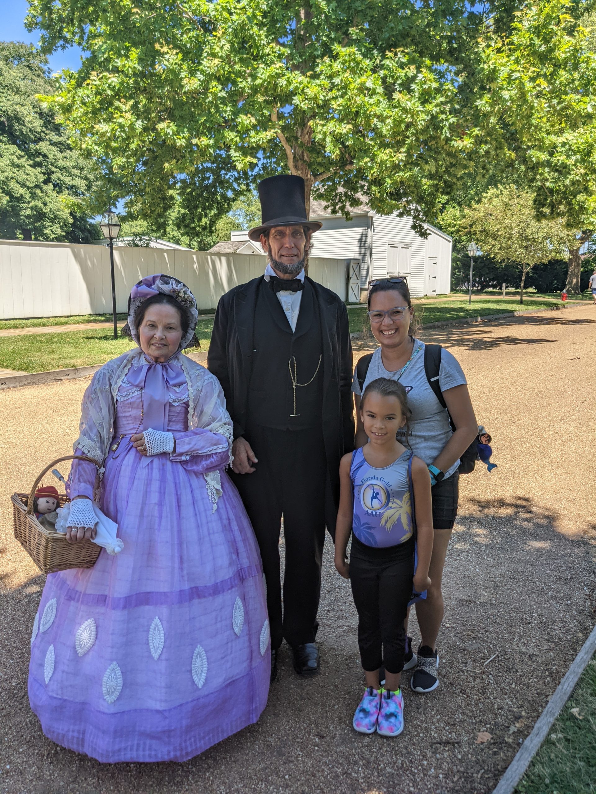 The National home is surrounded by a small protected area of neighborhood homes. It was like stepping back into time. A few homes were turned into little museums, while others were just to view from the outside. The Lincoln home was fully set up like a home would have been set in the 1800s. We saw his bedroom, as well as Mary Todd’s and the boys. The really cool kitchen and sitting areas. When we finished our tour, we even met the man himself and his wife!