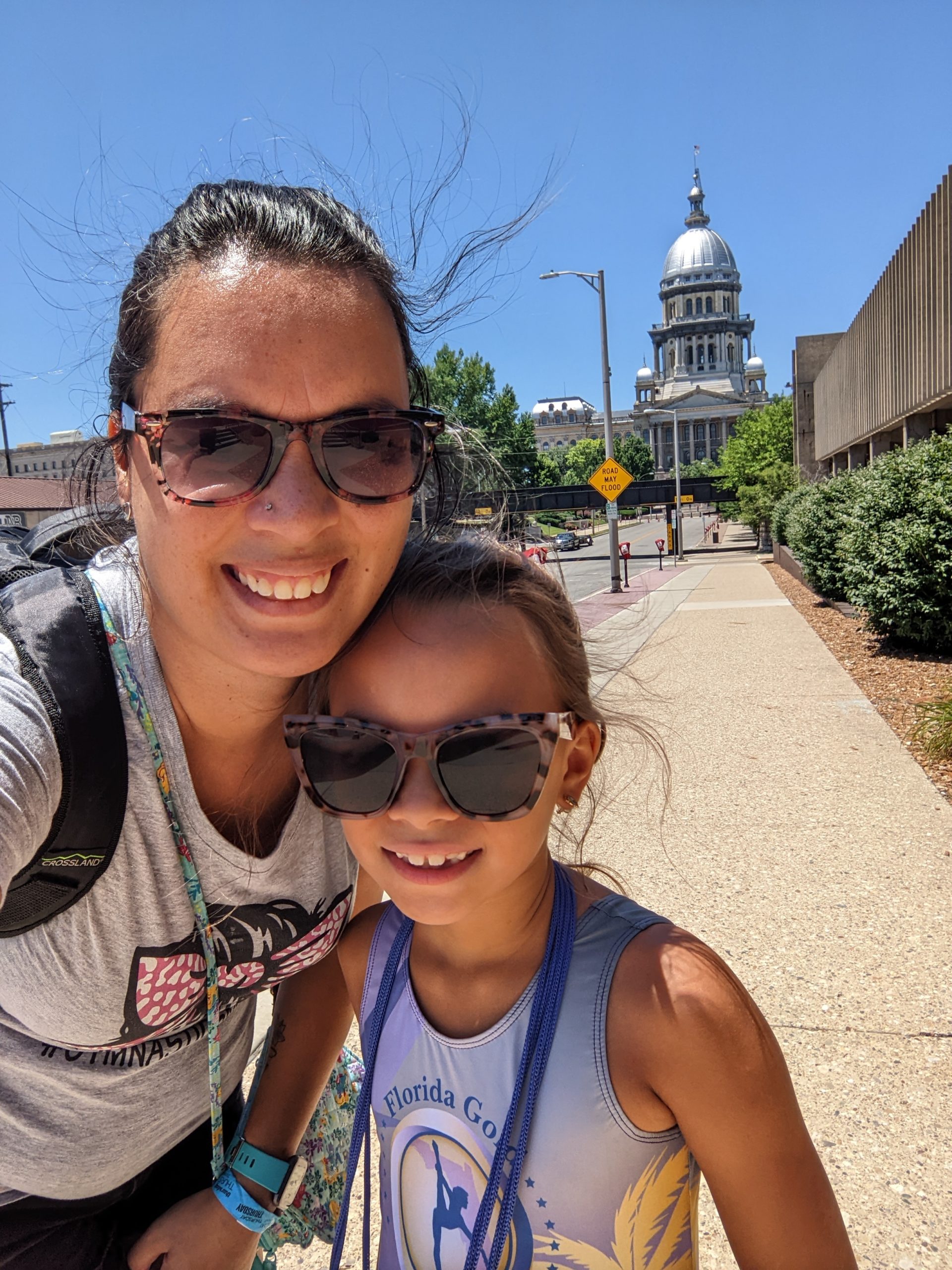 Evie’s first year of the gymnastics team took her to Nationals in Springfield, Illinois. When I looked up what was in the area, I was so excited to plan and take this trip. With the limited time and how far it was, it was not affordable for the whole family. I had not yet learned savvy ways to fly and get accommodations. We decided to take a special mother and daughter trip. The reason I was so excited for this trip was that our year of US history spent a lot of time focused on Abraham Lincoln. Springfield, IL happened to be his home. It also talked about westward expansion so we flew to the closest large airport in St. Louis, Missouri. Here’s more about our gymnastic trip, turned homeschool history trip.