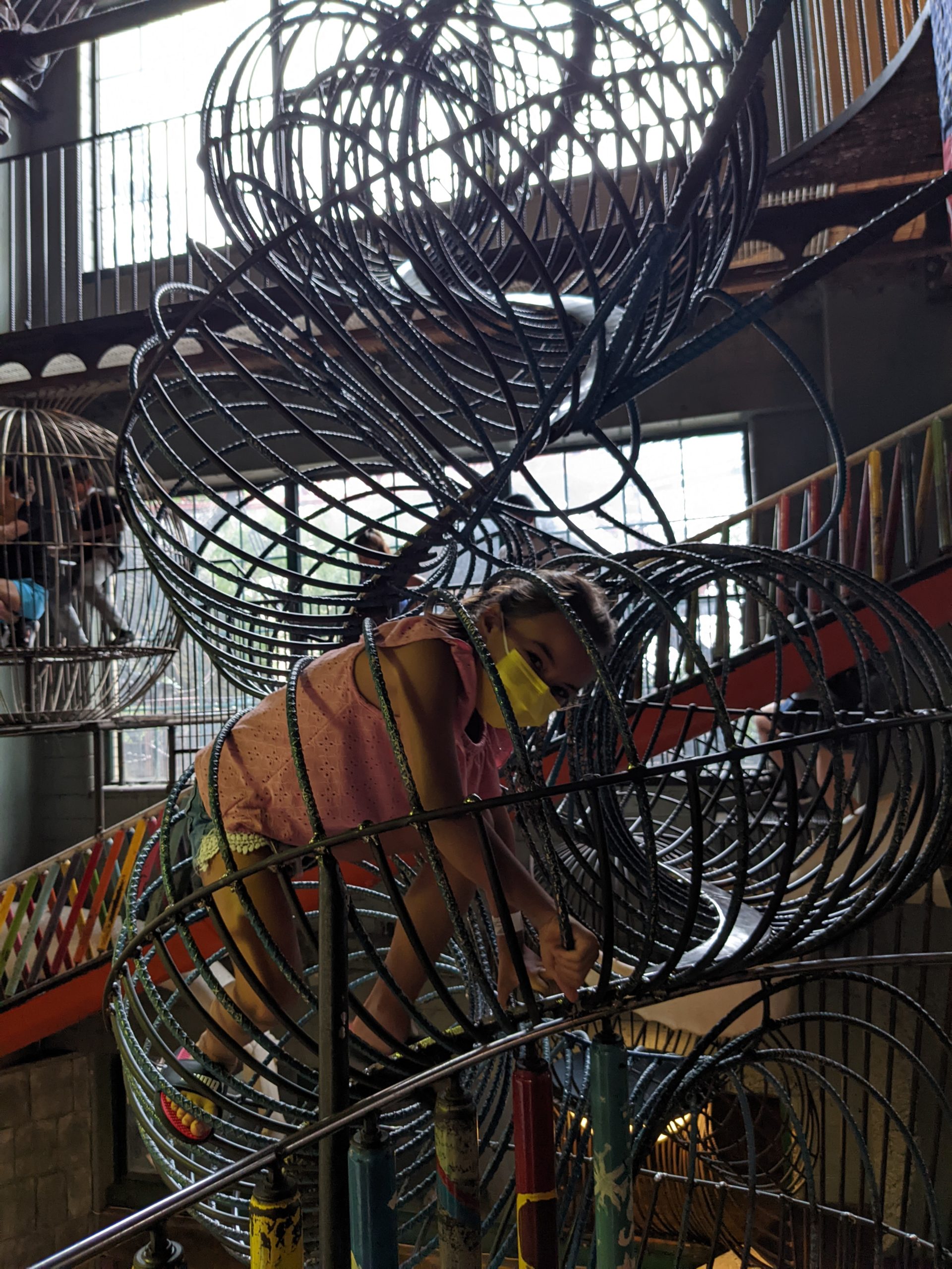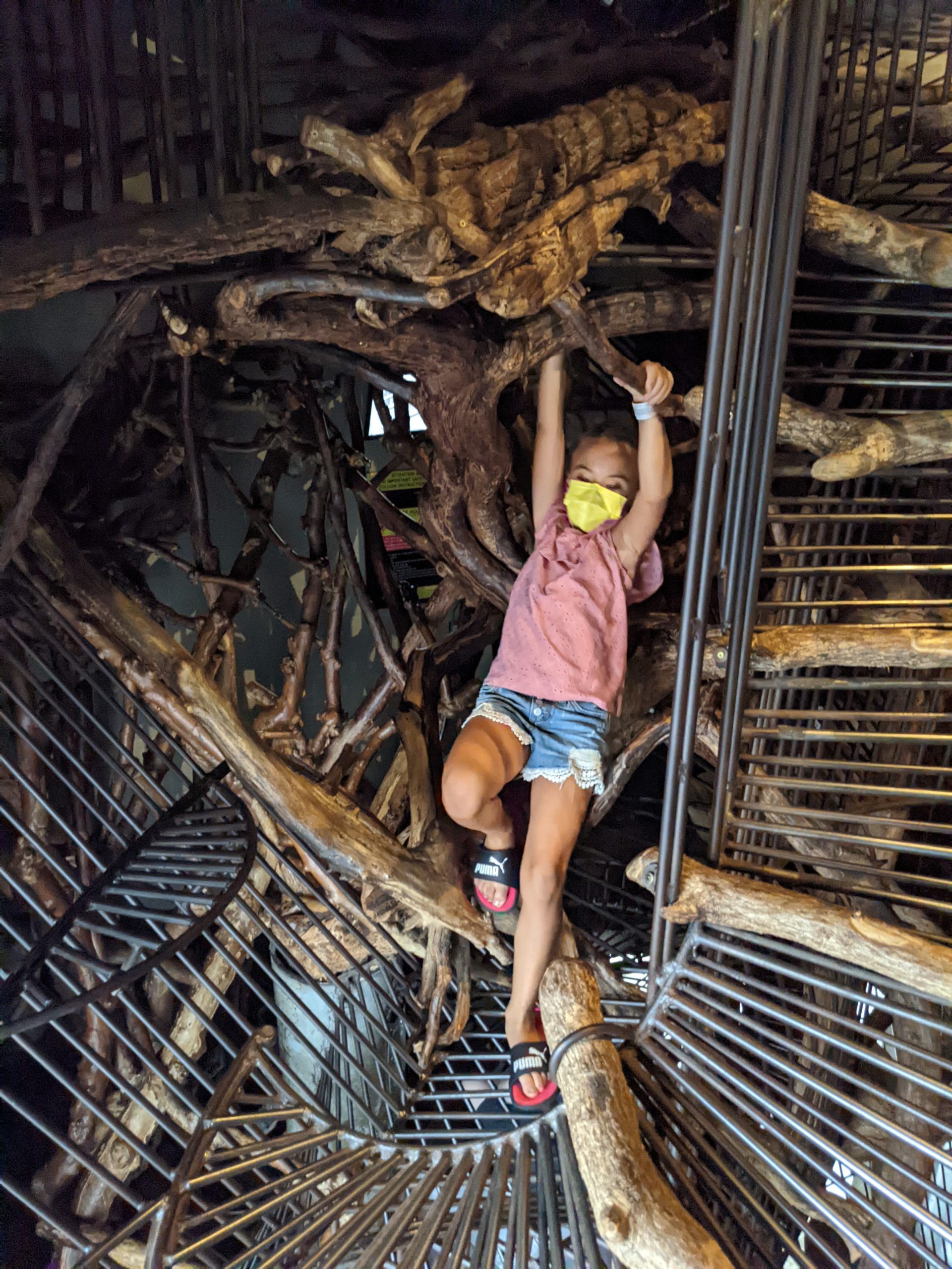 Our next stop was the City Museum. Because of the rain, we could not experience those outdoor components. We want to come back to try it out, but we did have hours of fun in the multi-story art exhibit play area. Well, I did a lot of sitting after climbing stairs and just watched Evie crawl through tubes and up ladders and lose her often and hope she would find her way back to the spot I picked. I think she could have stayed for hours. On the various floor, there are also many options for lunch, snacks, and drinks. It easily could be a full day of fun.