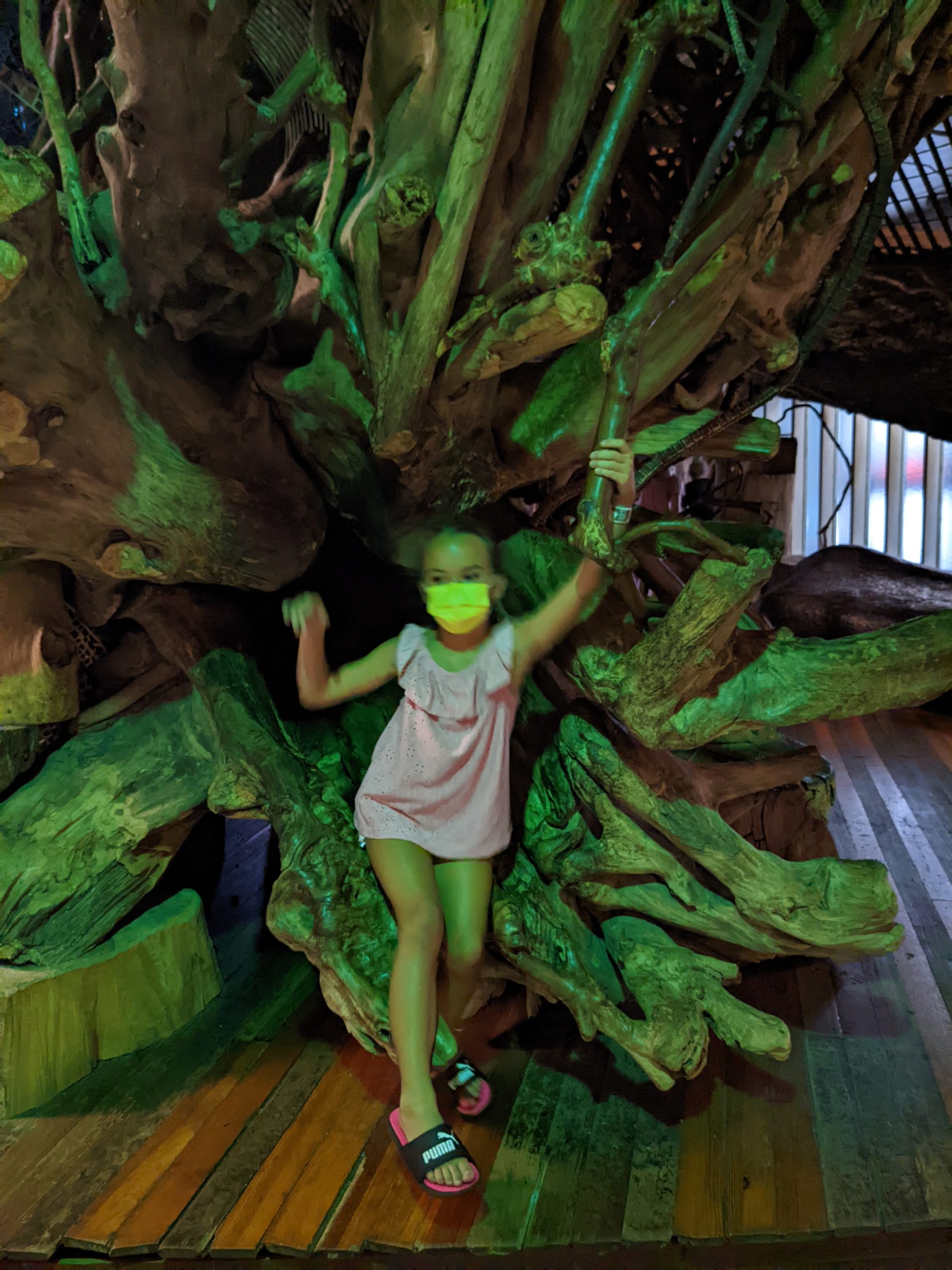 On our second day, we went to the St. Louis Aquarium. The aquarium is housed in the old train station. That made the entrance to the aquarium and 3D train ride. The aquarium was one of the most interactive we have been to. There were animals to touch and feed like doctor fish that nipped your fingers, touch tanks, and sting rays. You could also feed archerfish that shot water at their food. We saw an armadillo run around like a little puppy, that was so cute. We highly recommend this aquarium. The train station that it is set in also has a long list of other fun things like a mirror maze, rope course, little outdoor rides, restaurants, and even a hotel. We did do the mirror maze which was terrifying to me. I thought I would lose Evie at some point. It started to rain so we skipped the outdoor things.