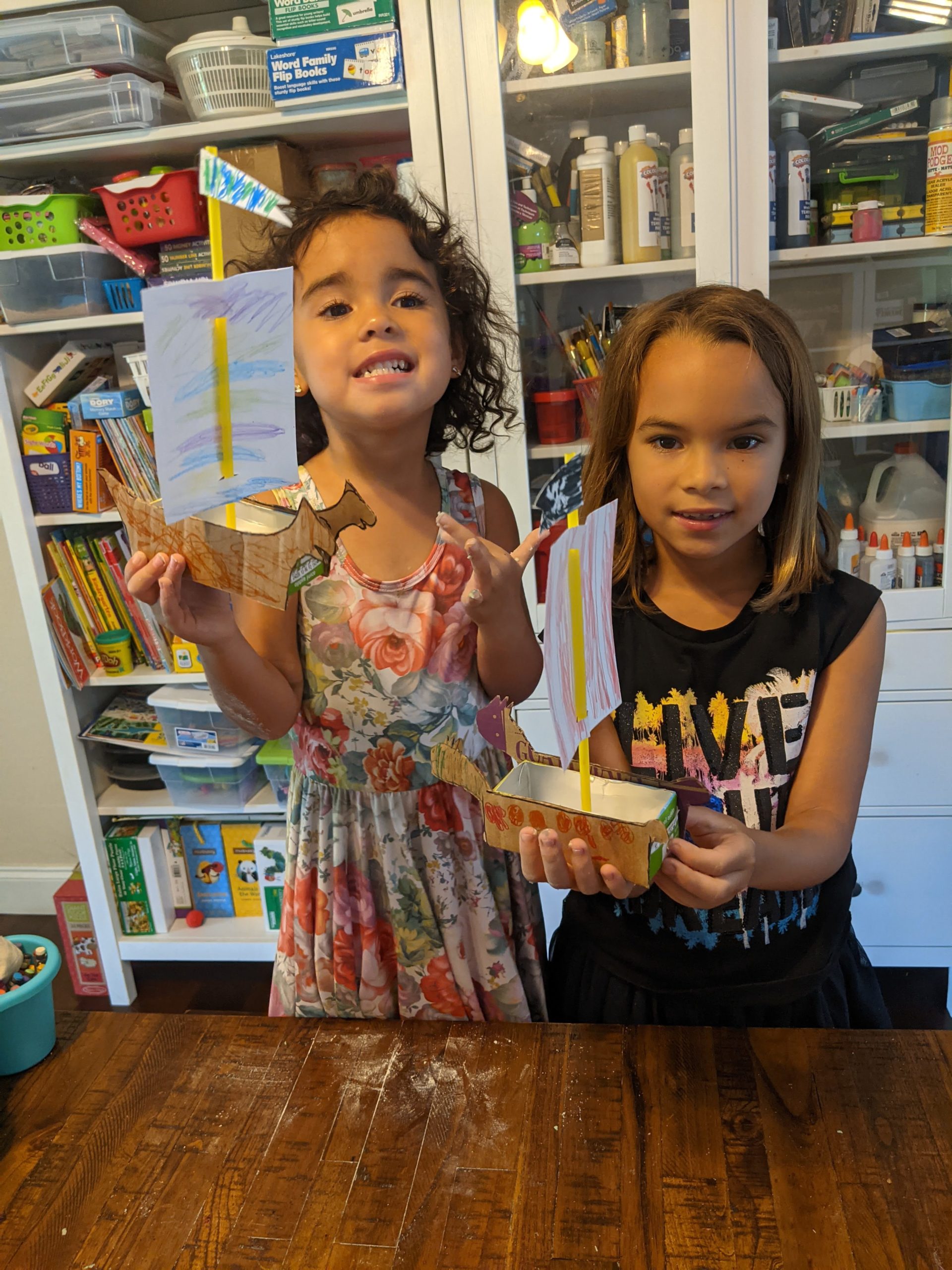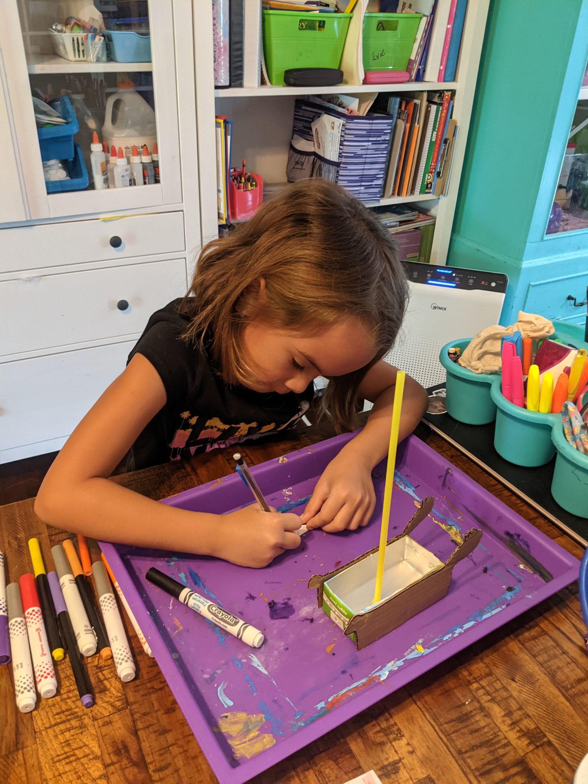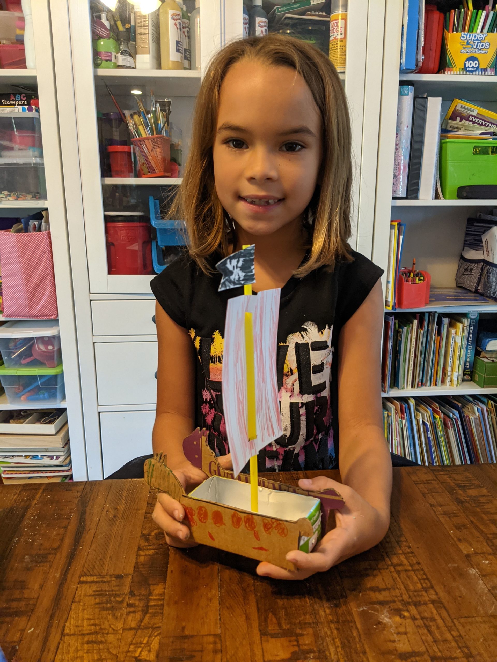 After lots of reading, summarizing, and studying, we had a craft day. We started with some longboats. These are the boats that the Vikings were well known for. They used them for travel, exploration, and for raiding as well. We covered the anatomy of a longboat and then they built their own from mini juice boxes.