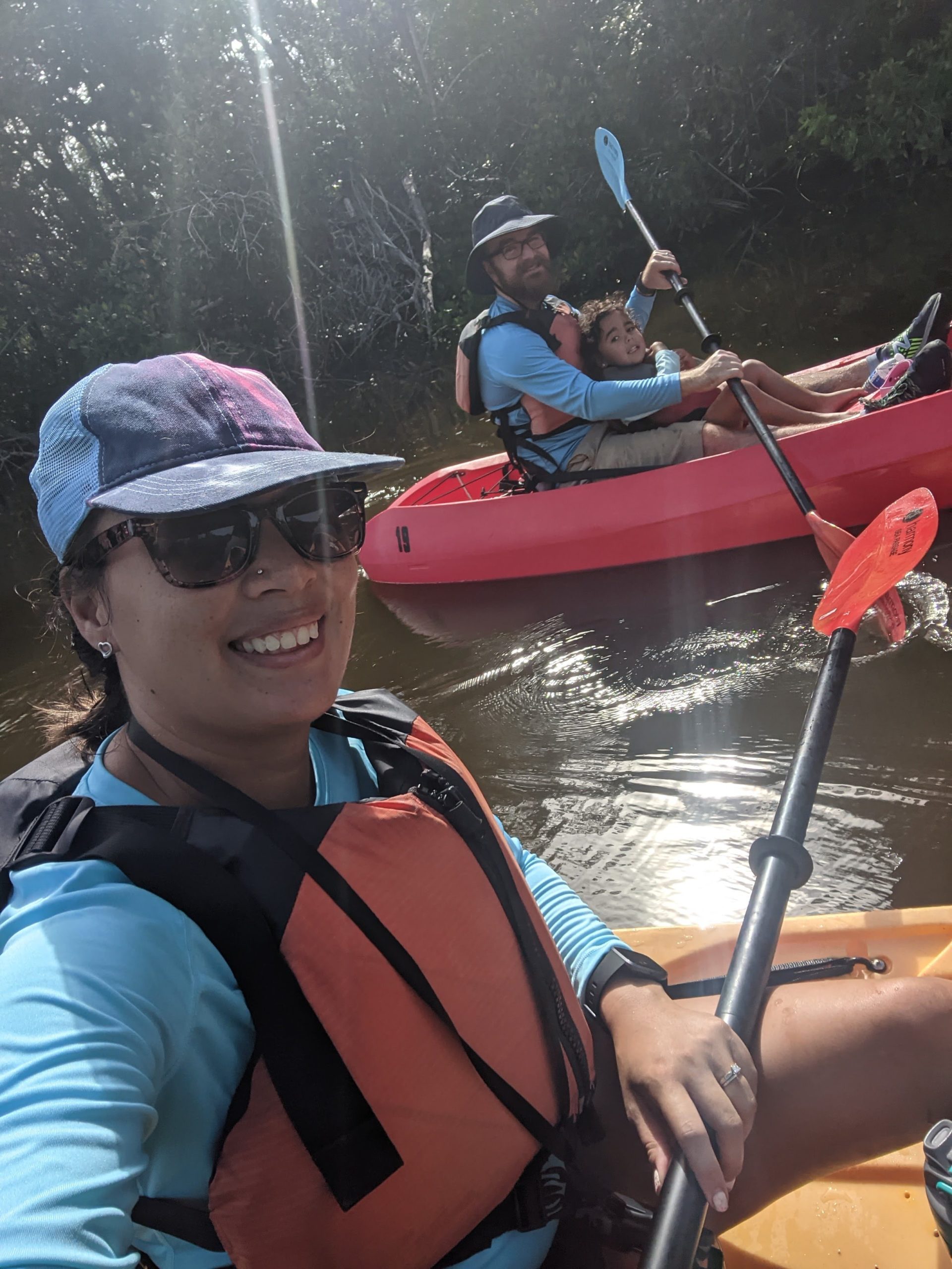 We rented Kayaks and paddled down the waterways in the morning and later in the afternoon we took a boat tour that took us out further into the waterways and swamps. We saw many crocodiles, and even some baby crocs. There were some birds but otherwise the wildlife was scarce. We learned all about the Burmese Pythons that are not native and took over the environment and had left very little small mammals in the Everglades.